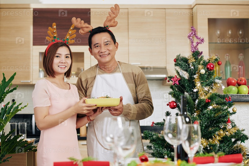 Пара, подающая рождественский ужин
