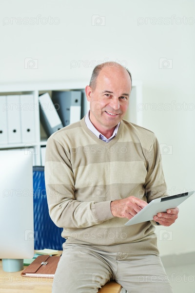 Бизнесмен, использующий приложение на планшете