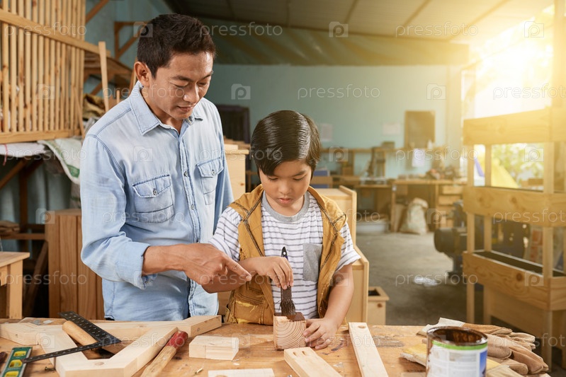 Мальчик учится столярству