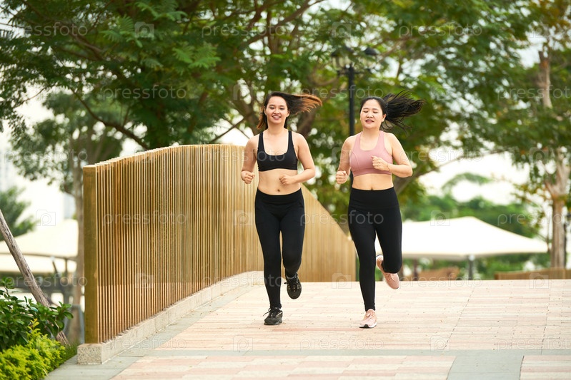 Девушки, бегущие в парке