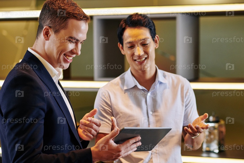 Коллеги по работе обсуждают мобильное приложение