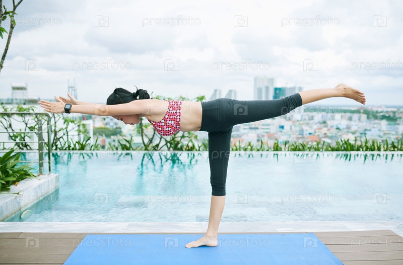 Женщина, простирающаяся возле бассейна