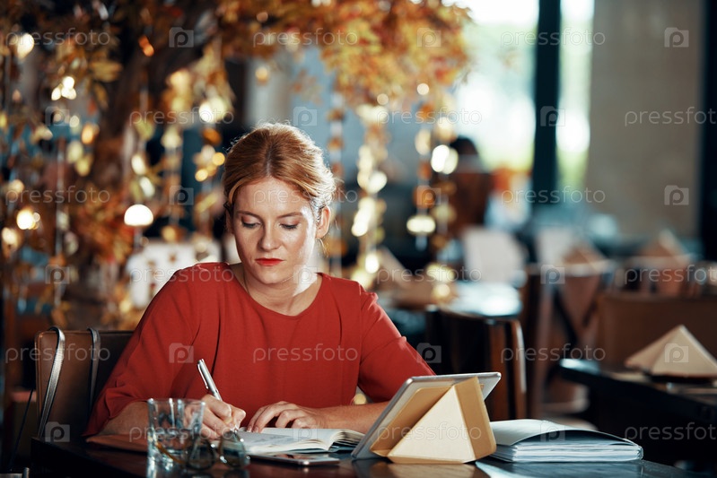 Деловая леди в открытом кафе