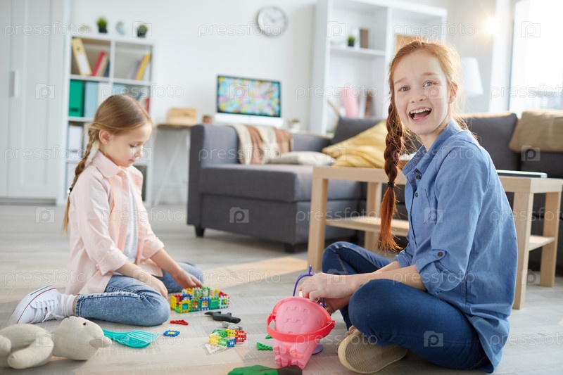 Две сестры играют дома