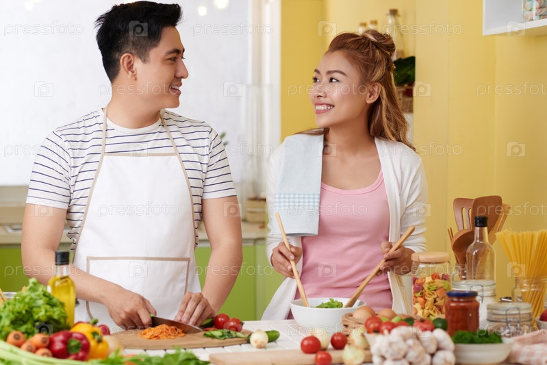 Веселая пара готовит ужин