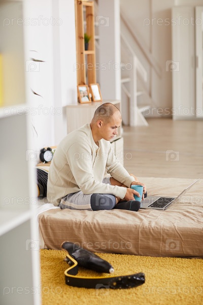 Мужчина, использующий ноутбук дома