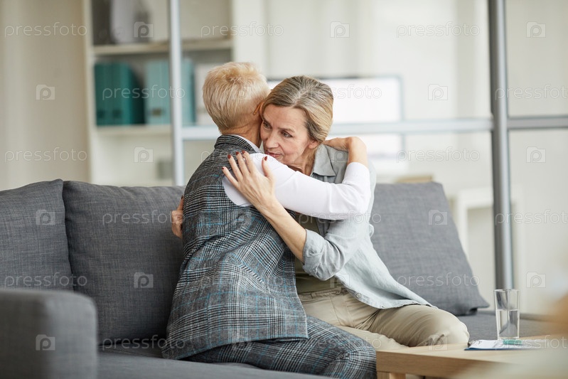 Психолог-женщина утешает зрелую женщину во время сеанса терапии