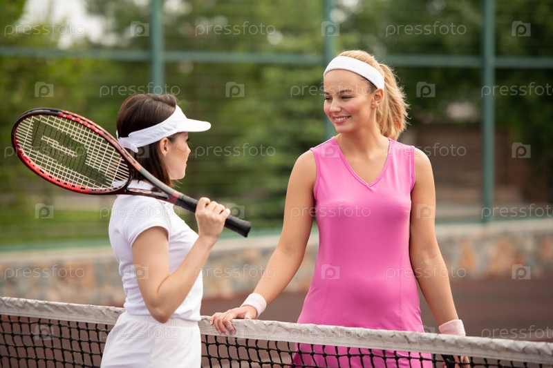 Блондинки и брюнетки молодые женщины взаимодействуют через сеть