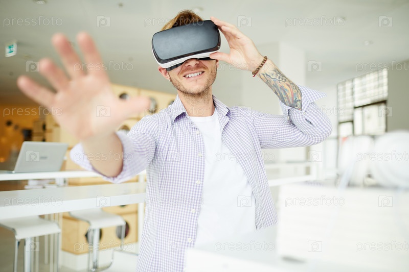 Любопытный хипстерский парень погрузился в виртуальный мир