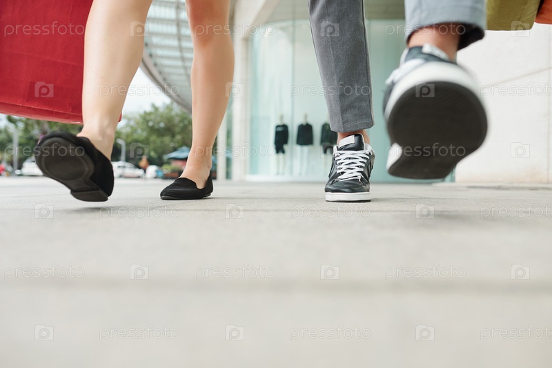 Пара, выходящая из торгового центра