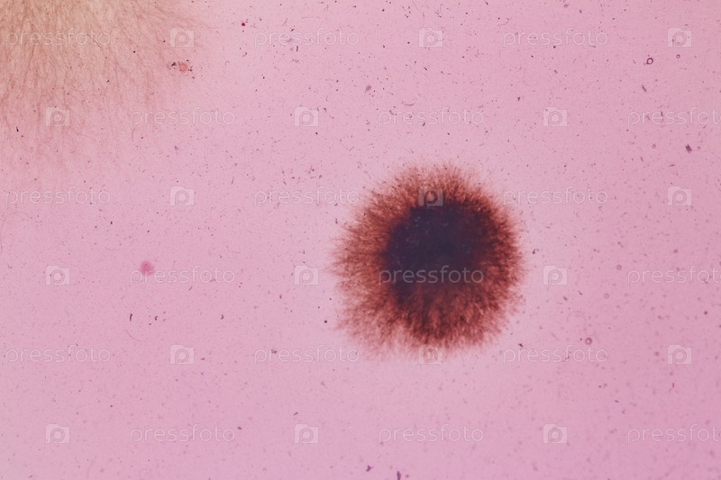 Экстремальный крупный план пушистых коричневых бактерий, растущих в специальной жидкости, концепция микроорганизма
