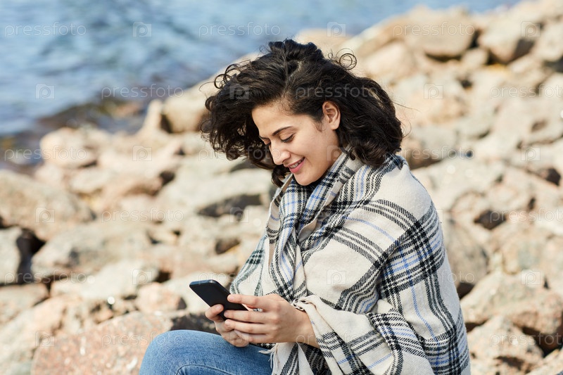 Женщина из озера, использующая смартфон