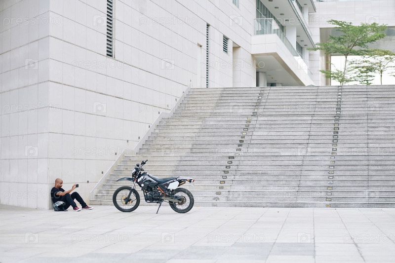 Мужчина фотографирует мотоцикл