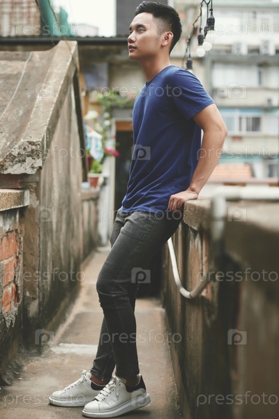 Молодой азиат, стоящий в городе