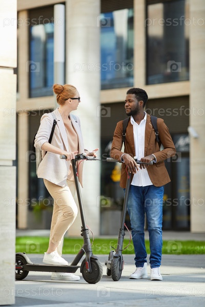 Студенты ездят на электрических скутерах в кампусе