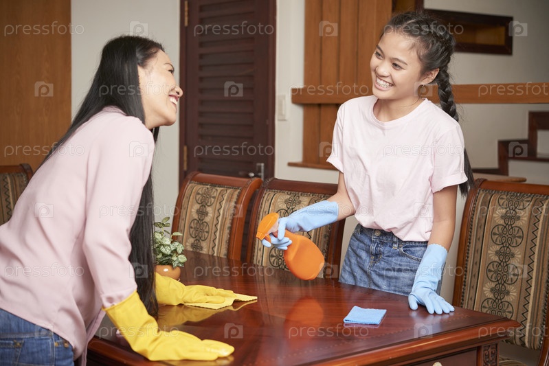 Мать, выполняющая работу по дому со своей дочерью