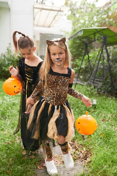 Девушки с фонарями на Хэллоуин