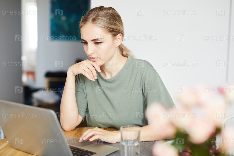 Молодая женщина-фрилансер в casualwear сети дома