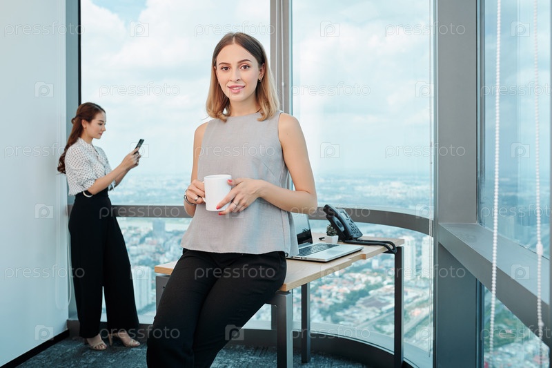 Красивая бизнесвуменка пьет кофе