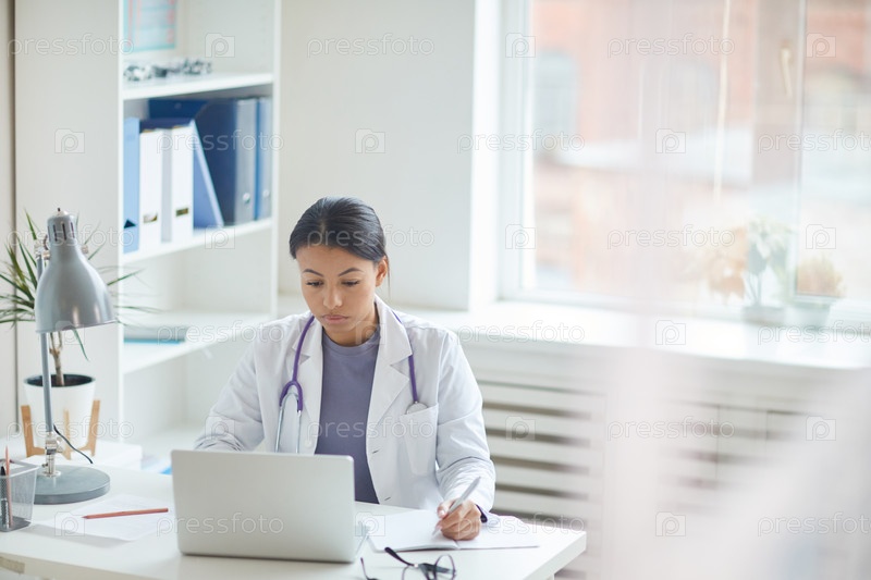 Доктор использует ноутбук в офисе