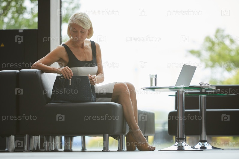 Деловая женщина, сидящая в офисном зале
