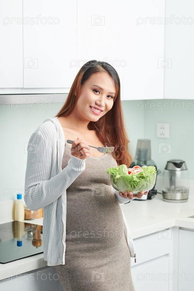 Беременная женщина ест салат