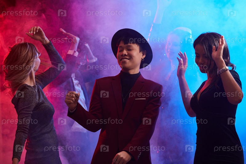 Люди танцуют в дымном ночном клубе