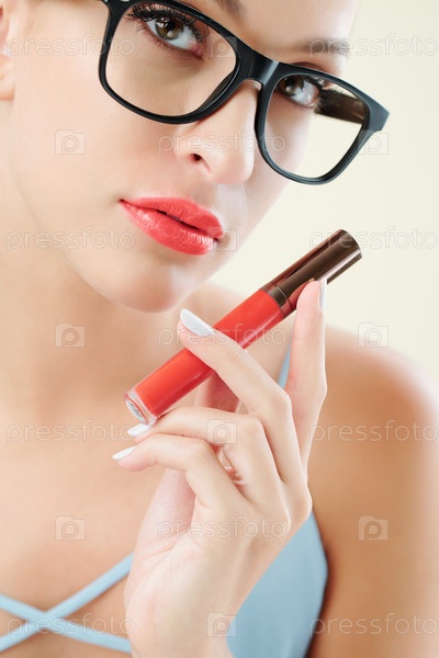 Женщина, показывающая яркую помаду
