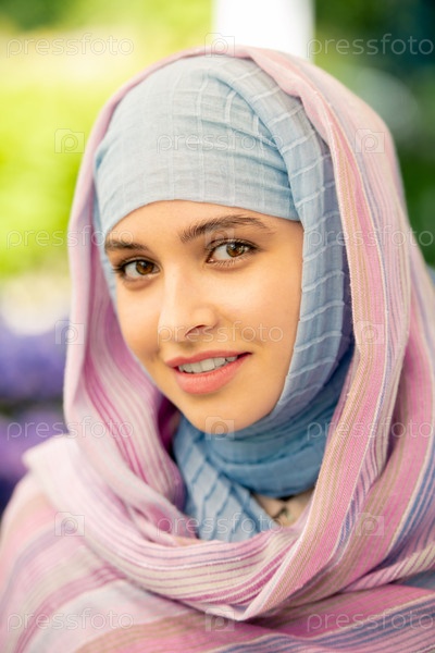 Молодая привлекательная арабская женщина с естественным макияжем в хиджабе