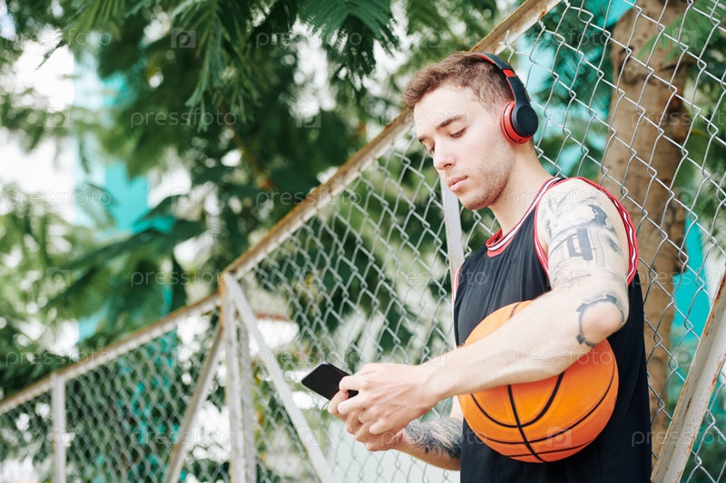 Баскетболист проверяет телефон