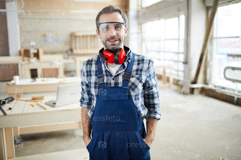 Счастливый слесарь в мастерской
