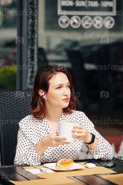 Деловая женщина пьет кружку кофе