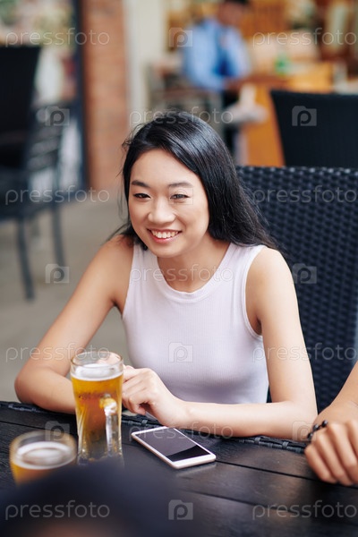 Азиатская женщина сидит в кафе
