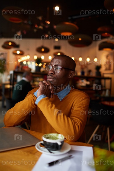 Пенсивный афроамериканский мужчина в кафе