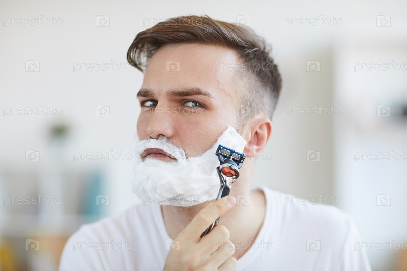 Молодой человек брится