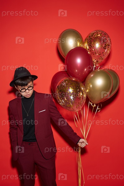 Модный азиатский мужчина на красном
