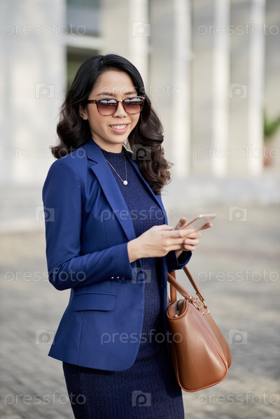 Красивая стильная бизнесвуменка на открытом воздухе
