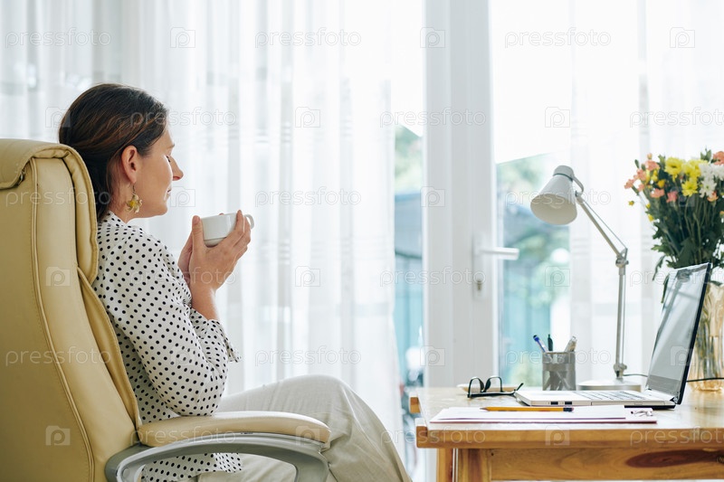 Деловая женщина наслаждается утренним кофе