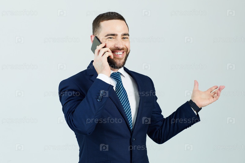 Позитивный менеджер, общающийся по телефону
