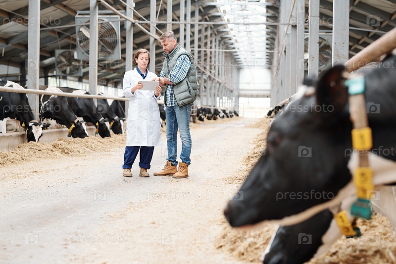 Молодая женщина-работница большого фермерского дома показывает своей коллеге информацию в Интернете