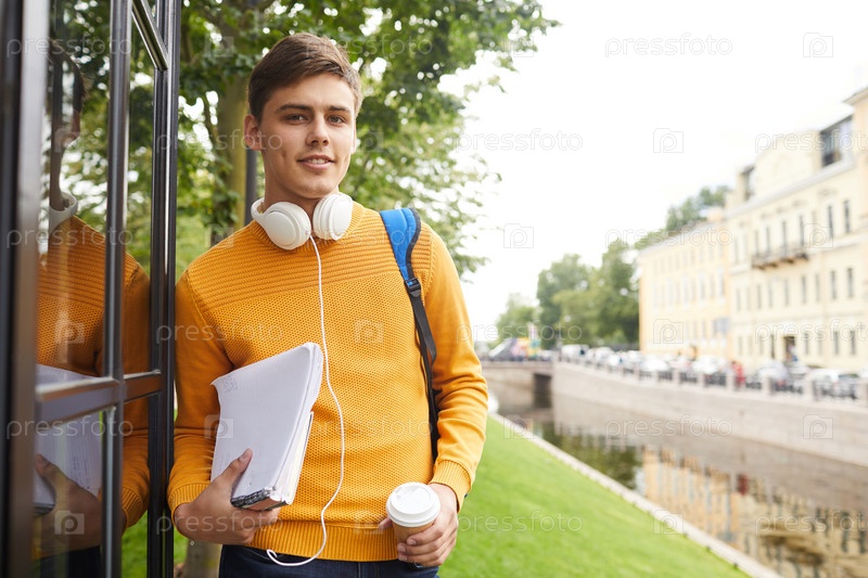 Молодой студент, позирующий на открытом воздухе
