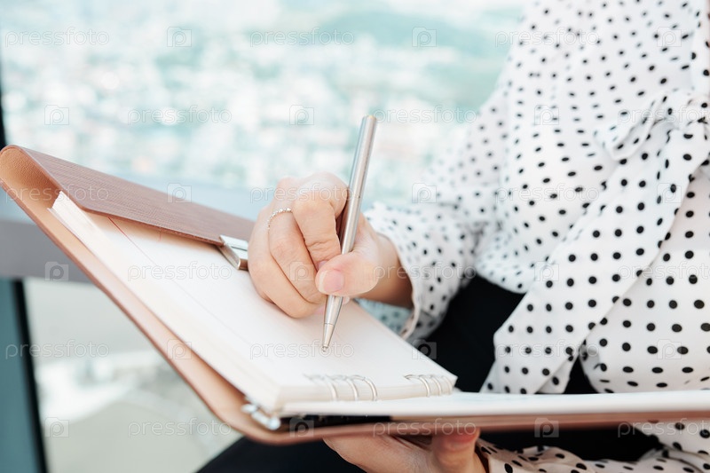 Деловая женщина, записывающая планы