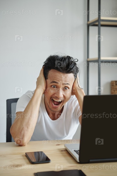 Шокированный мужчина читает электронную почту
