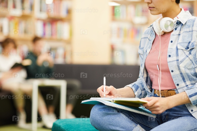 Загруженный студент делает заметки в учебнике