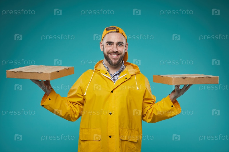 Человек по доставке еды с коробками для пиццы