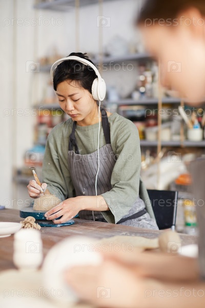 Азиатская женщина формирует дно чаши