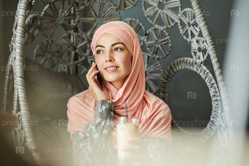 Красивая мусульманка, разговаривающая по телефону