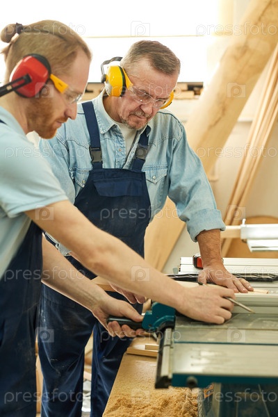 Два плотника режут древесину
