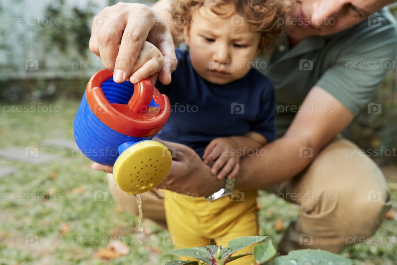 Мальчик, поливающий цветы