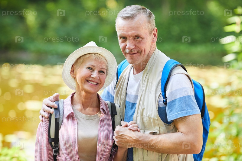 Счастливые старшие туристы на открытом воздухе